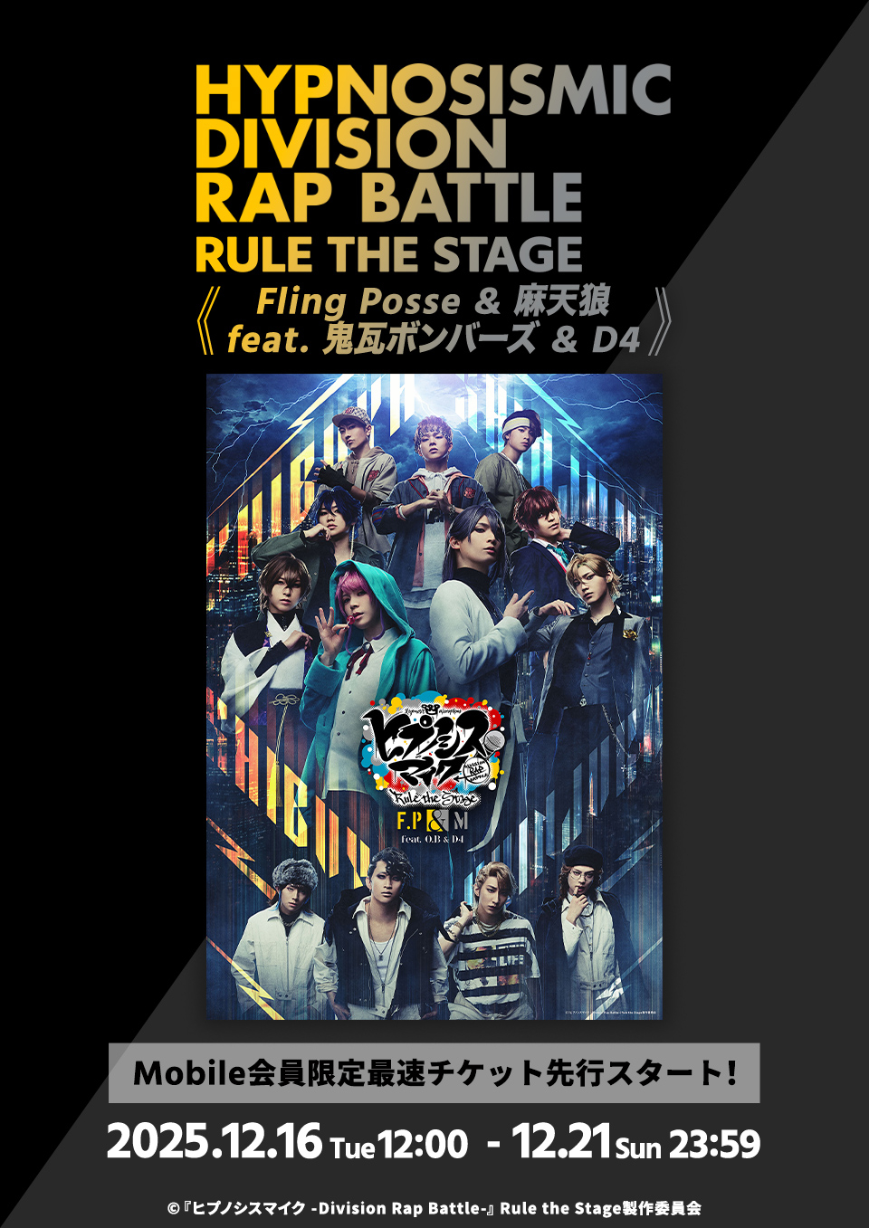 『ヒプノシスマイク -Division Rap Battle-』Rule the Stage《Fling Posse & 麻天狼 feat. 鬼瓦ボンバーズ & D4》最速チケット先行スタート!!